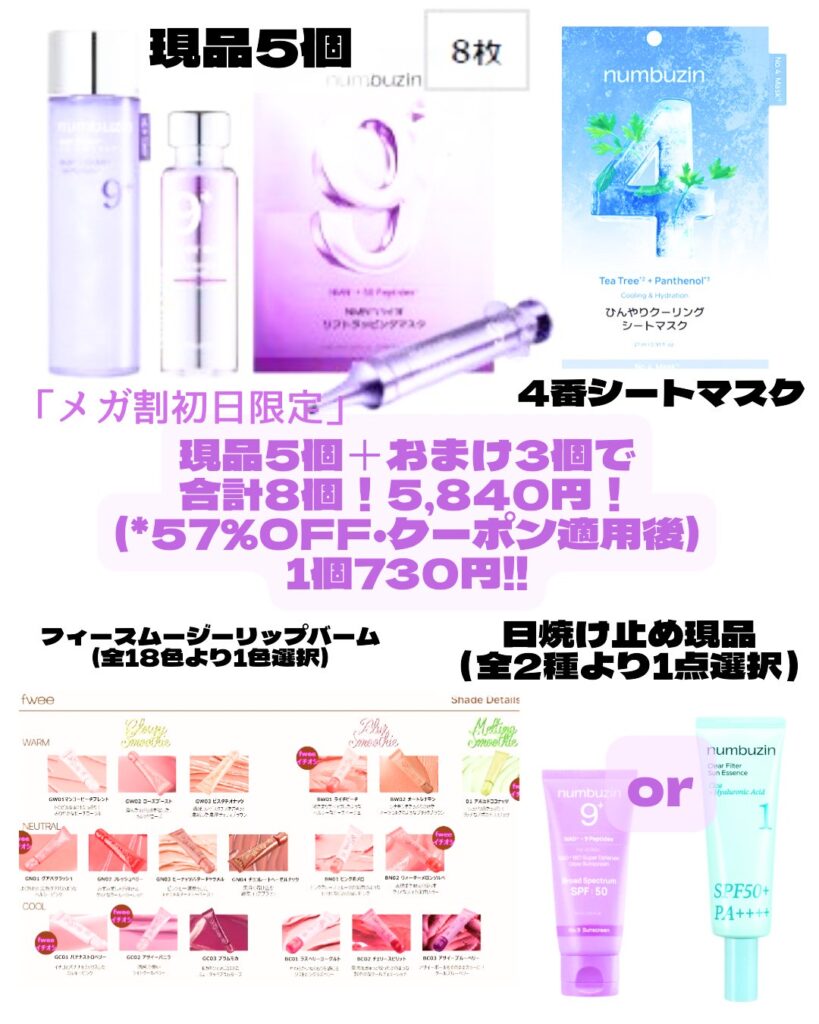 しかも今回、セットを1つ買うと現品が3点ついてくる。